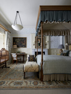 You always put a four-poster or corona bed in – you’ve said you don’t think you’ve ever done a project without one. What does a bed like that do for a room that nothing else can?