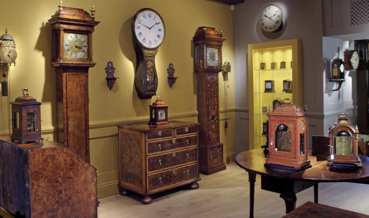 The interested buyer will find clocks by some of England’s greatest clockmakers including Thomas Tompion, the Knibb family, George Graham, Daniel Quare, the Vulliamys, Dent and Frodsham in the gallery or online.